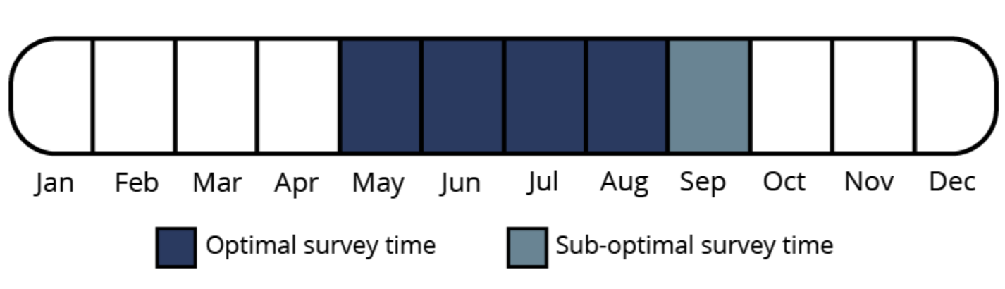 Emergence surveys are conducted between May - September.